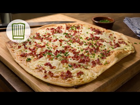 Schneller Flammkuchen Rezept #chefkoch - Flammkuchen Ricetta - Wie Ihr auch ohne Hefe einen Flammkuchen mit dünnen und knusprigen Teig ganz schnell hinbekommt zeigen wir Euch hier. Dafür braucht Ihr: Wasser, Öl, ...