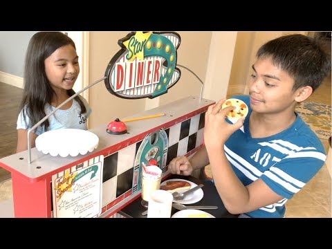 Emma Pretend Play as Waitress w/ Diner Restaurant Food Kitchen Kids Toys - Star Dinner - Emma pretend play as waitress with her new diner restaurant food kitchen kids toys! Uncle K and Emma open a new restaurant and Uncle John is their first ...
