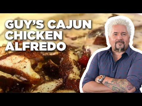 Guy Fieri Makes Cajun Chicken Alfredo | Food Network - Fettuccine Alfredo Food Network - Blackened chicken adds a Cajun twist to Guy's Alfredo! P.S. Look at all that Parm Get the recipe: ...